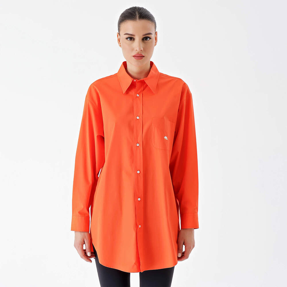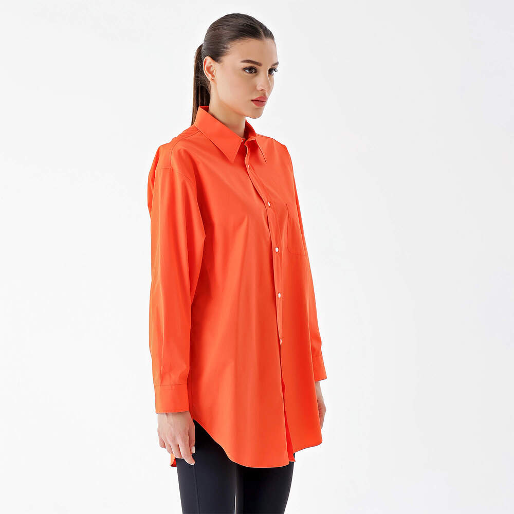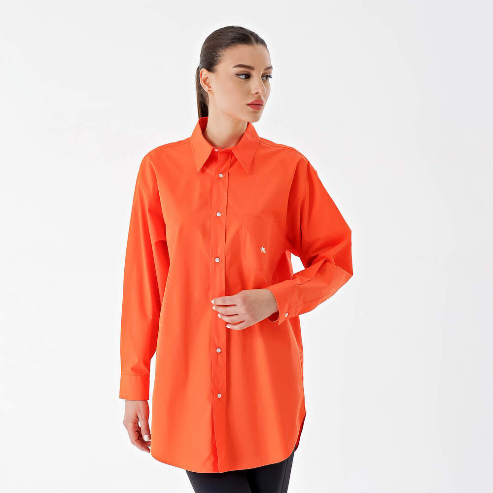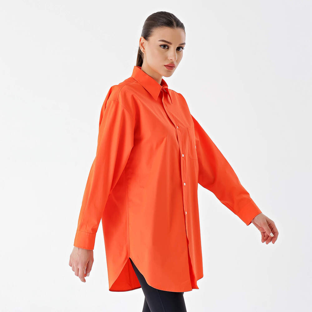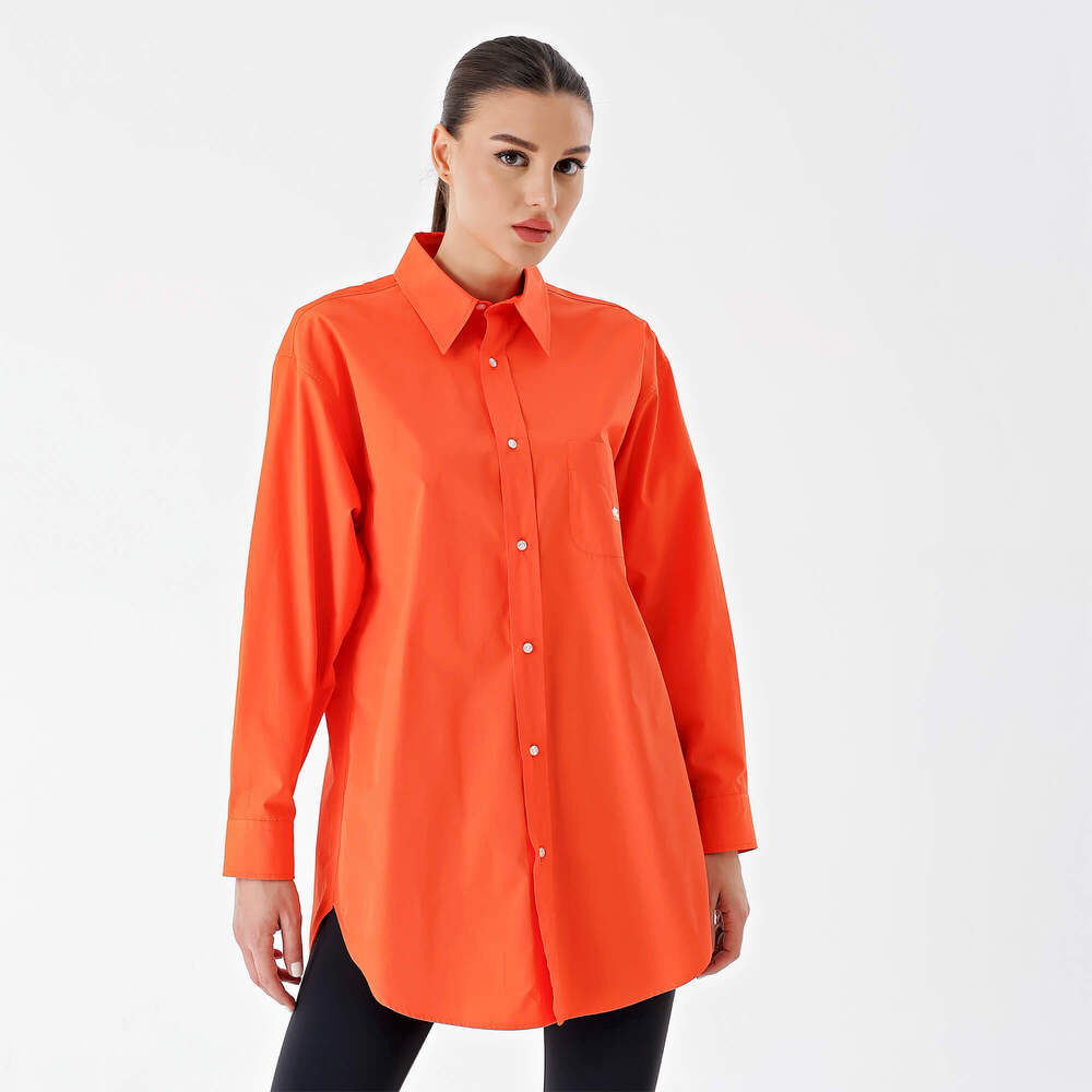 Neon Turuncu Logolu Oversize Gömlek / 42